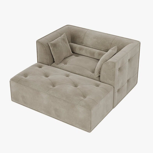 Luxury Velvet Tufted Low Back Sofa Set L-Shape 2-Piece Living Room Couch, 113"W Left Hand Facing Sectional, Grey