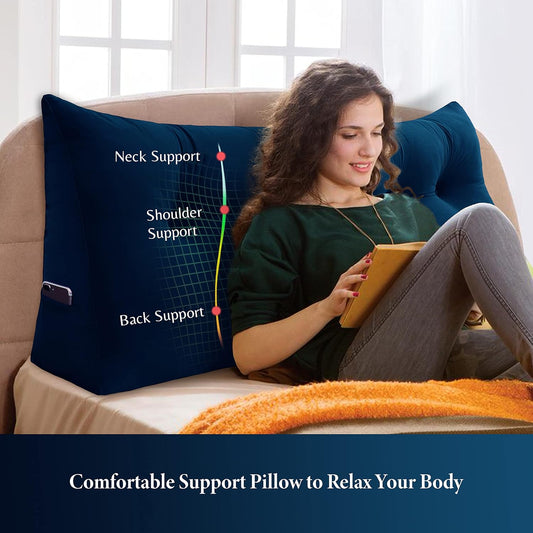 Large Headboard Pillow Wedge Bed Rest Reading Pillow Daybed Pillows Triangular Headboard Wedge Pillows Bolster Gap Filler Triangle Back Cushion Long Wedge Pillow, Velvet Deep Blue Twin