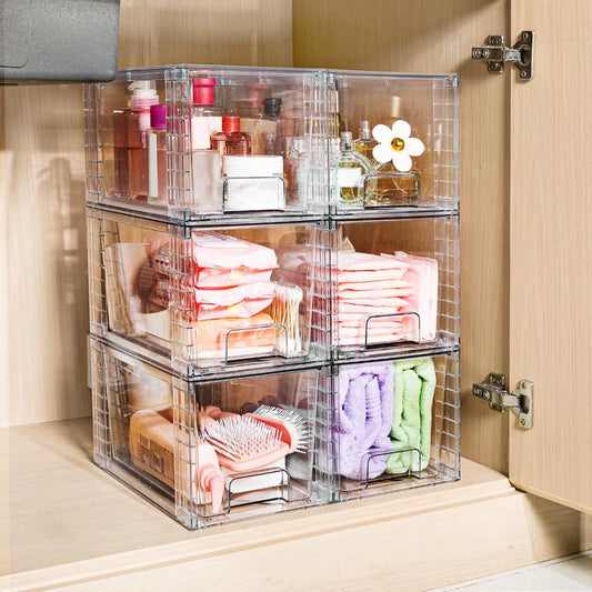 6 Pack Closet Organizers and Storage,Clear Stackable Plastic Storage Bins with Lids Magnetic Doors,Clothes Organizers and Storage,Plastic Craft Containers for Wardrobe Kitchen Bathroom Office