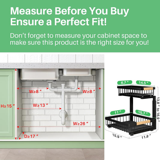 Under Sink Organizer, 2 Packs 2 Tier under Sink Organizers and Storage, Slide Out Pull Out Cabinet Organizer Shelf, Metal Sliding Drawer for Kitchen Bathroom Pantry Cabinet Closet Organization Rack