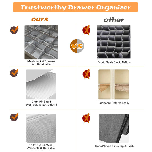 4-Pack Drawer Organizer Set - Closet Dividers for Underwear, Socks, Bras, Scarves, Ties - Foldable Non-Woven Storage Boxes, Dark Gray