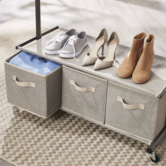 2 Tier Garment Rack with 3 Drawer Closet Organizer, Laundry Room Organizer , Gray
