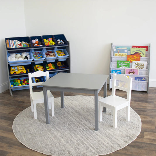 Kids Toy Storage Organizer with 16 Plastic Storage Bins, Grey/Blue
